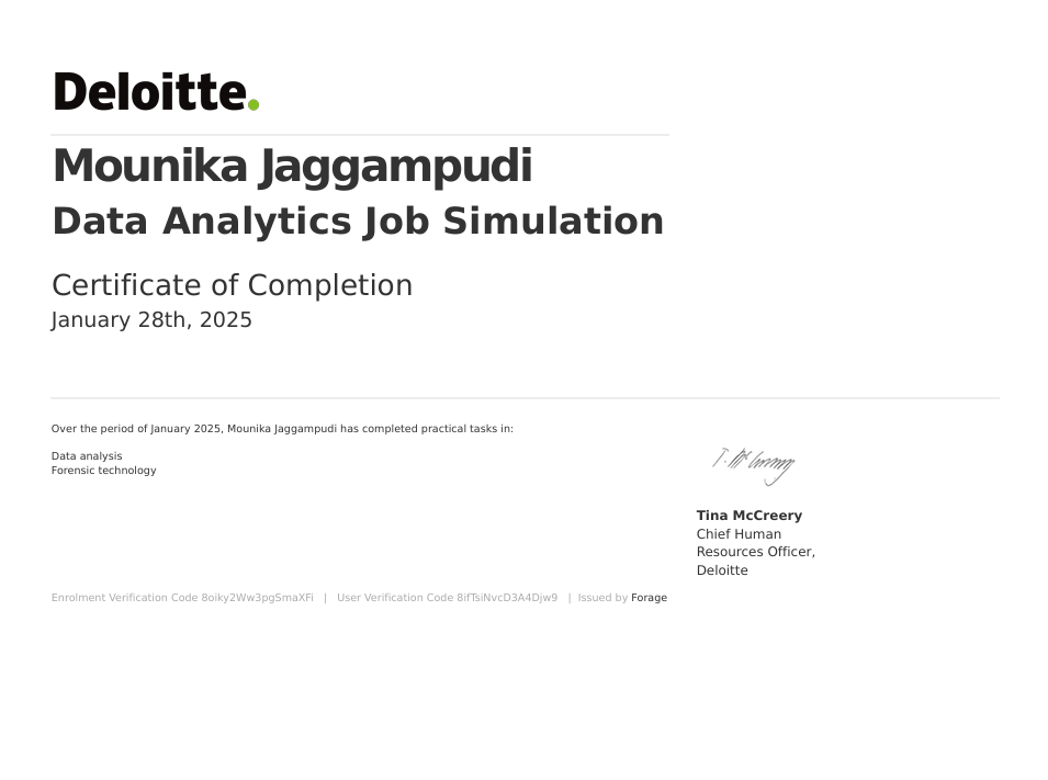 Details: Completed the “Data Analytics Job Simulation” program, gaining hands-on experience in data analysis and forensic technology.